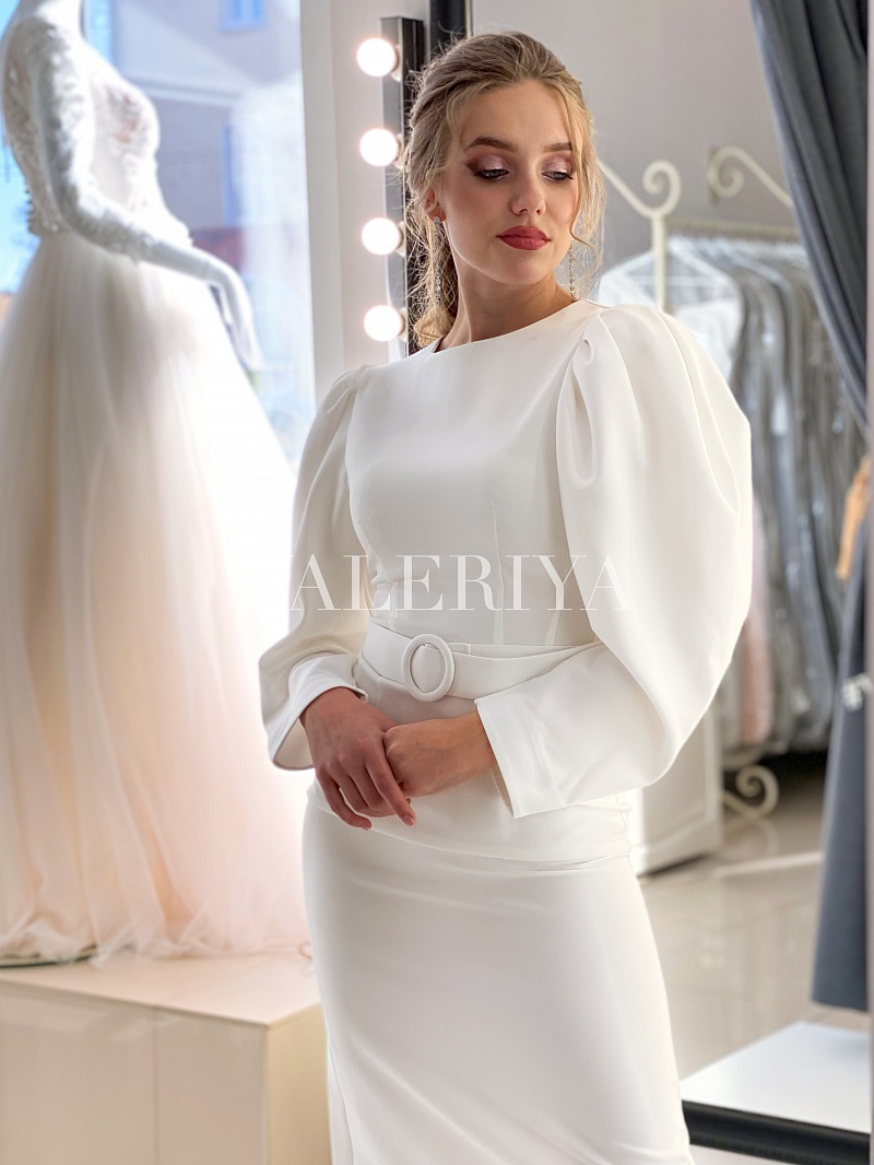 До 20.000 руб., Минимализм, Платья для регистрации, Платья до 42-го размера, Платья с рукавами, Короткие свадебные платья