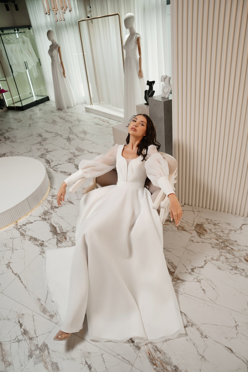 До 20.000 руб., А силуэт, Минимализм, Платья для регистрации, От 48 размера, Платья с рукавами, Платья до 42-го размера