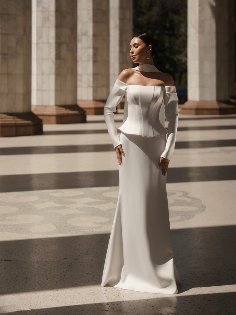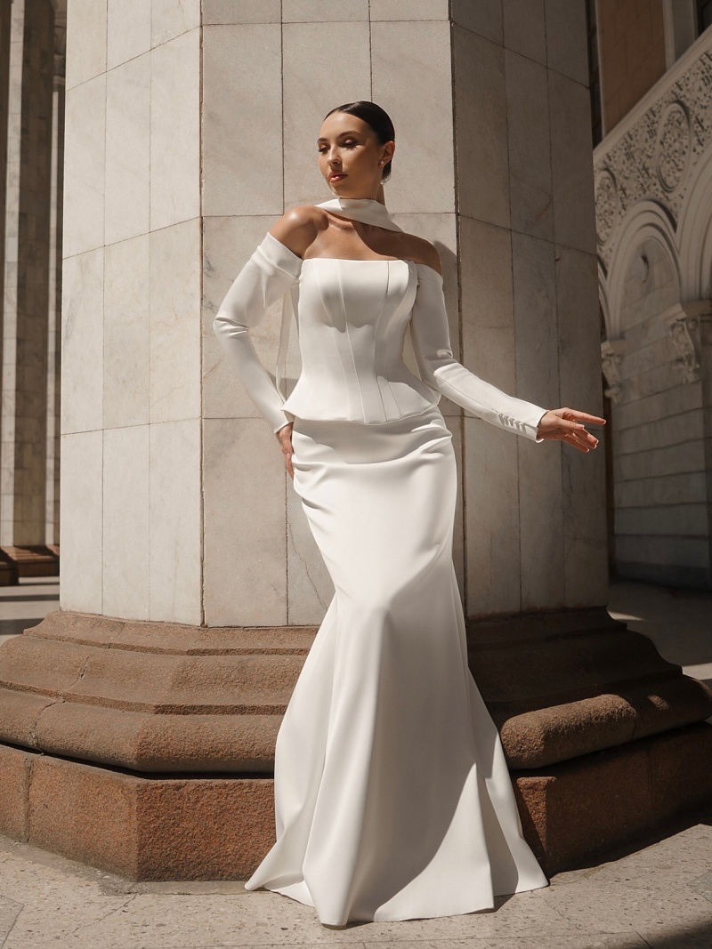 От 20.000 руб. до 40.000 руб., Минимализм, Силуэтные/прямые платья, Платья для регистрации, Платья до 42-го размера, Открытые свадебные платья, От 48 размера